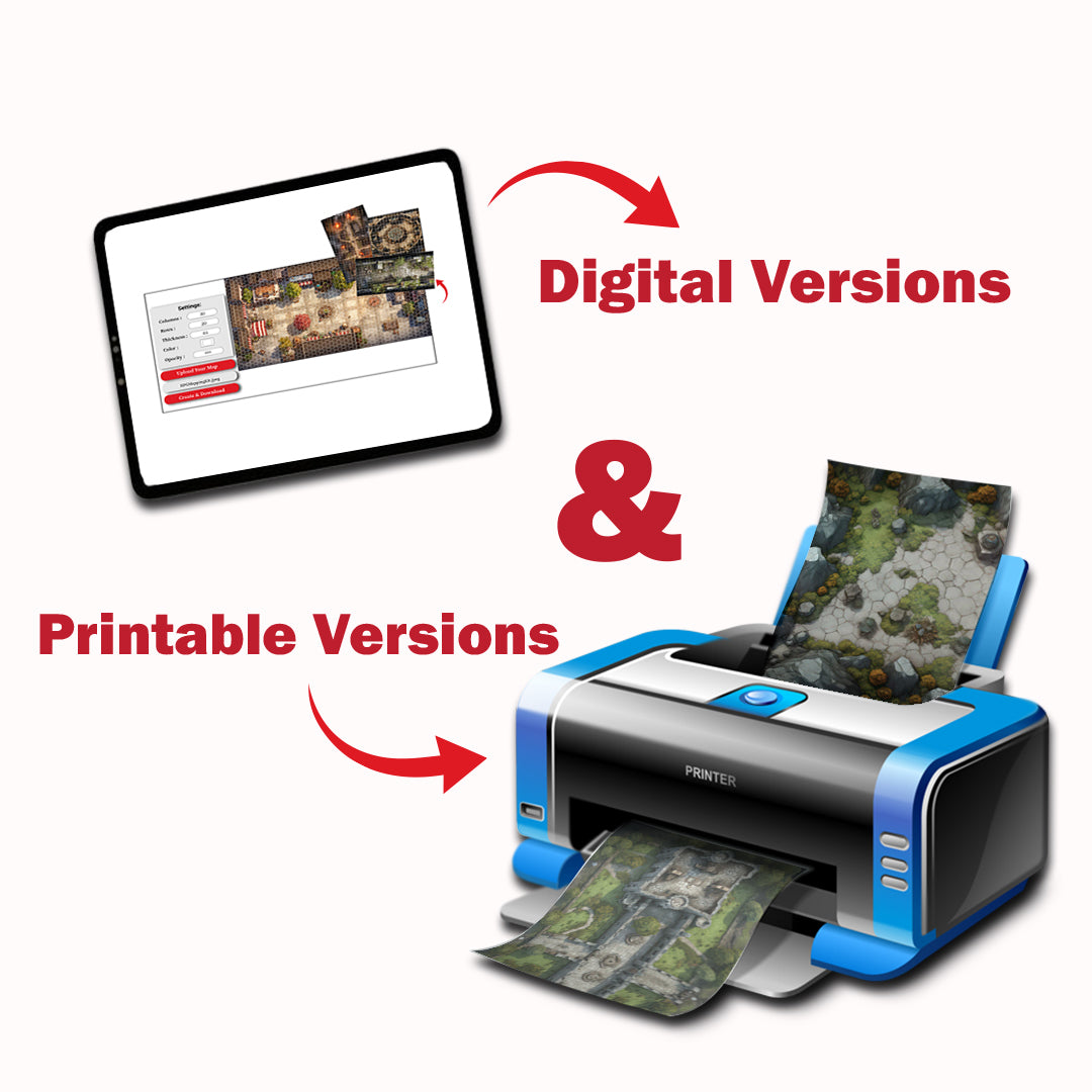 Yes. All maps are print-ready. You can print them across multiple sheets of paper to create large, detailed maps for in-person play.